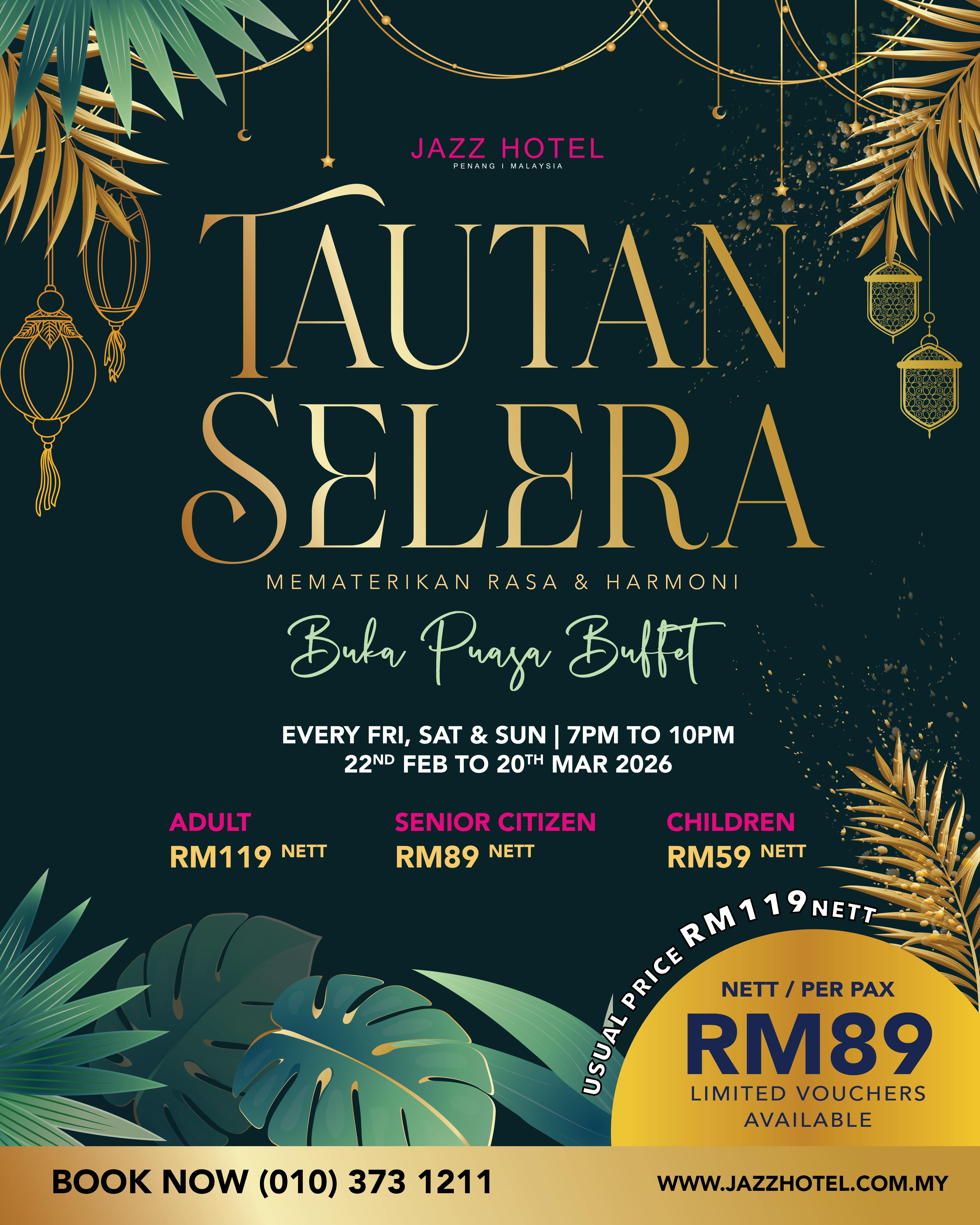 Experience the spirit of Ramadan with Tautan Selera, a buka puasa buffet that brings flavours and hearts together. Thoughtfully curated to celebrate harmony, tradition, and togetherness, this dining experience invites families and friends to share meaningful moments over a comforting spread, set in a serene and welcoming ambience at Jazz Hotel Penang.