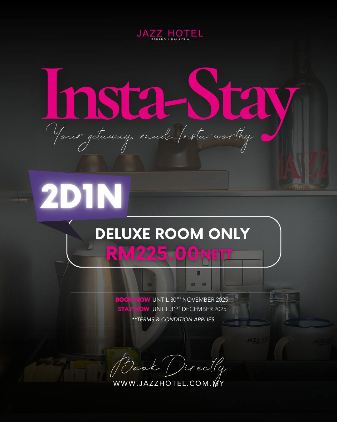 Whether it’s a cozy weekend or a spontaneous getaway, make your stay at Jazz Hotel Penang truly Insta-worthy. Book Now!