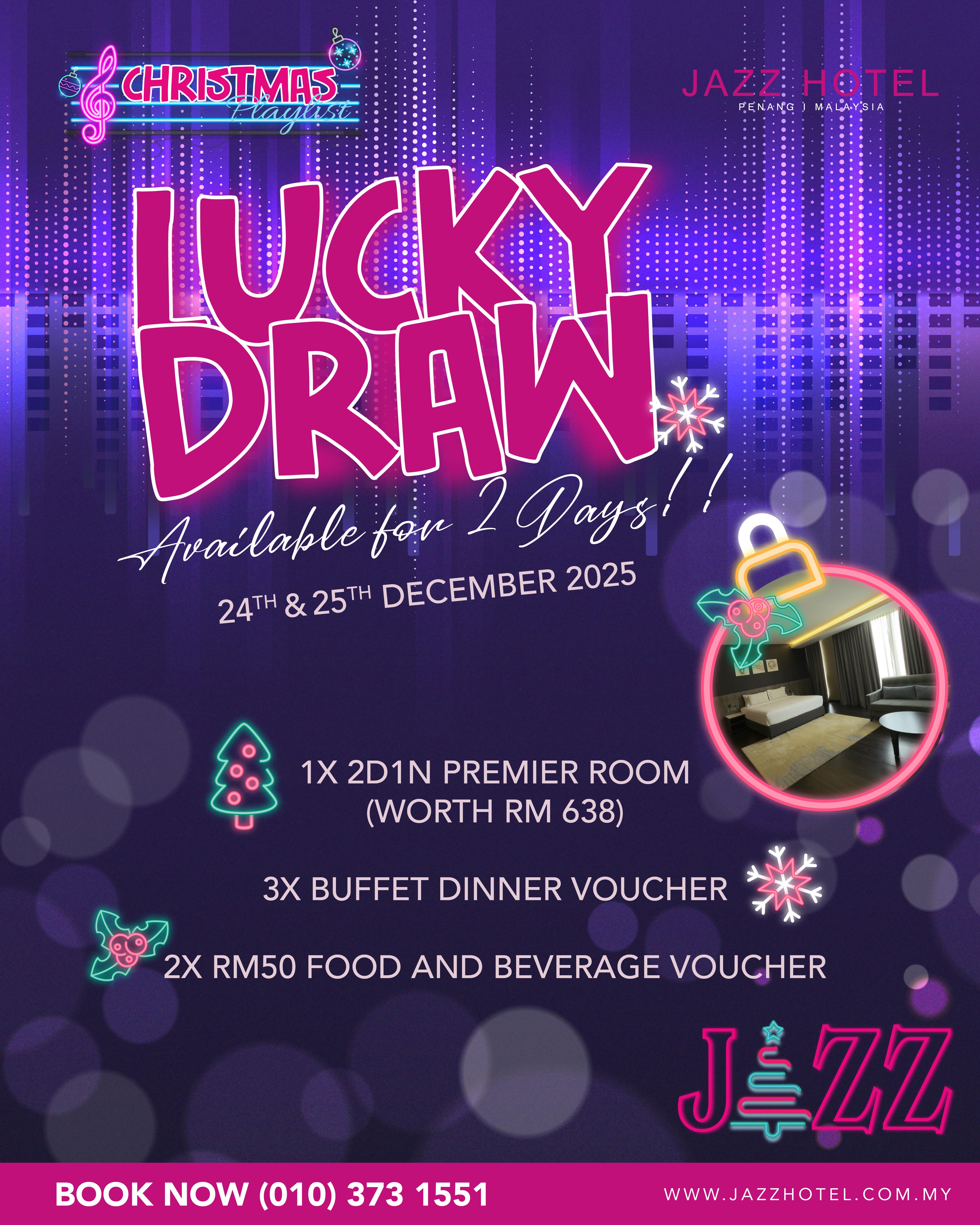 Exciting Lucky Draw prizes await — including a 2D1N Premier Room Stay worth RM638 and dining vouchers!