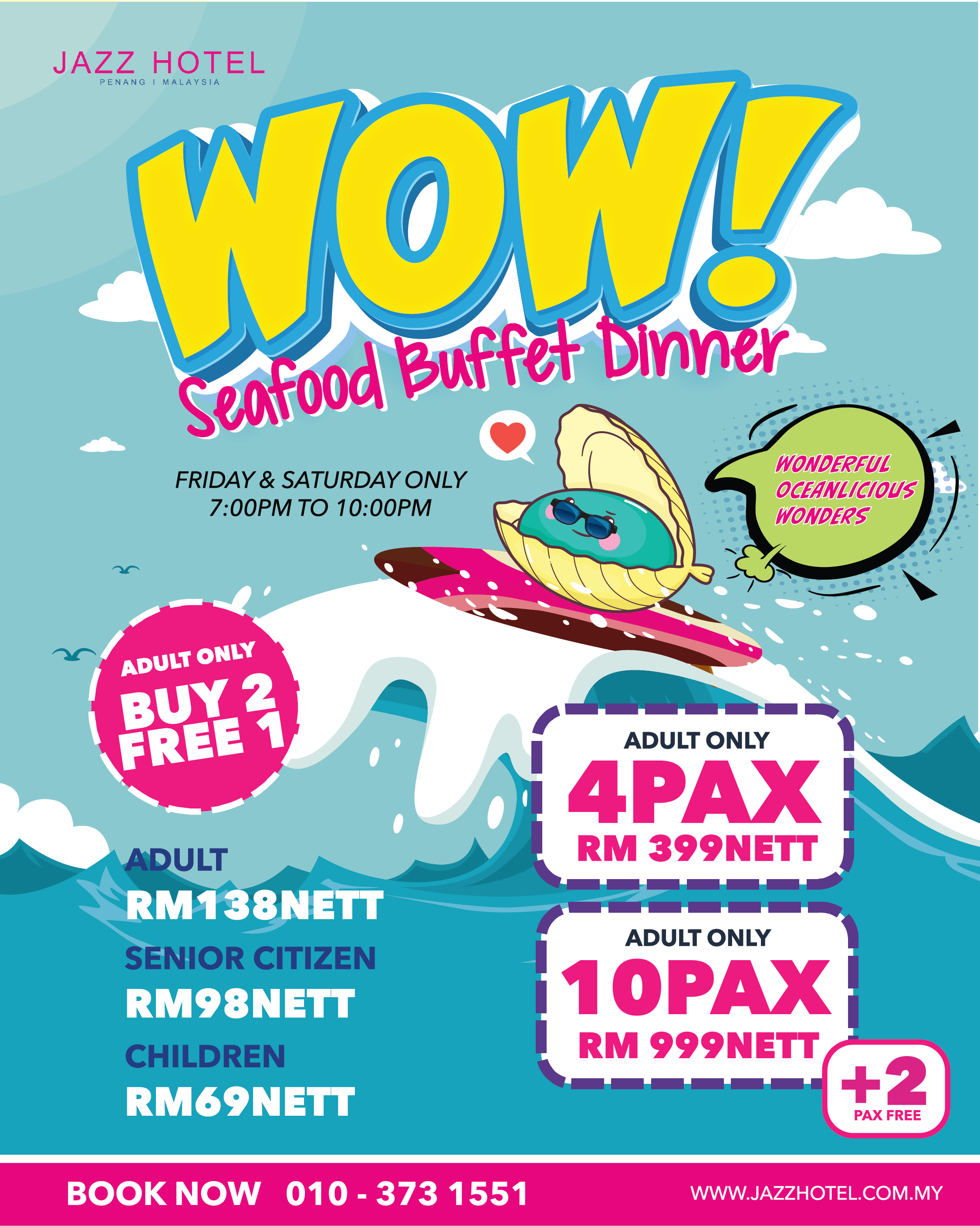 Dive into a sea of flavours with our WOW! Seafood Buffet Dinner, a feast that will surely make your Fridays and Saturdays unforgettable!